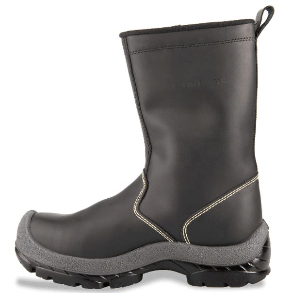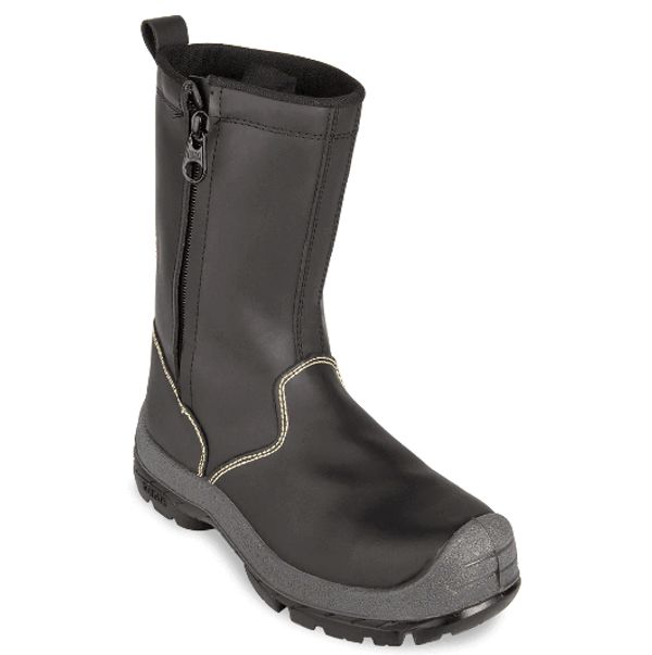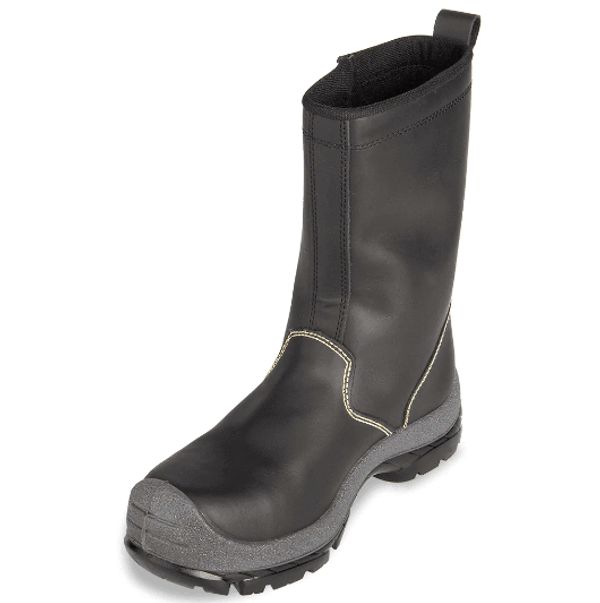 Bota de trabajo tipo soldador con punta de seguridad en policarbonato para mitigar riesgos de impacto o compresi贸n.