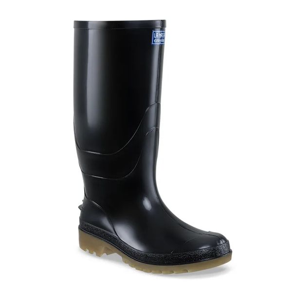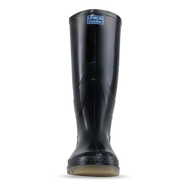 Las botas La Macha Alta Negro son botas de trabajo impermeables y de protecci贸n, fabricadas en PVC, con certificaci贸n Icontec bajo la norma ASTM F2892-18. Cuentan con ca帽a negra, suela crep茅, forro interno en poli茅ster tejido rizo y puente estabilizador en la planta del pie. Ideales para ganader铆a, agricultura, servicios generales, vigilancia, lavaderos de veh铆culos y uso en moto.